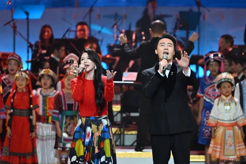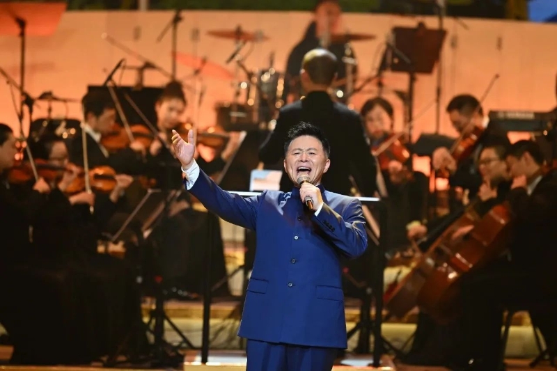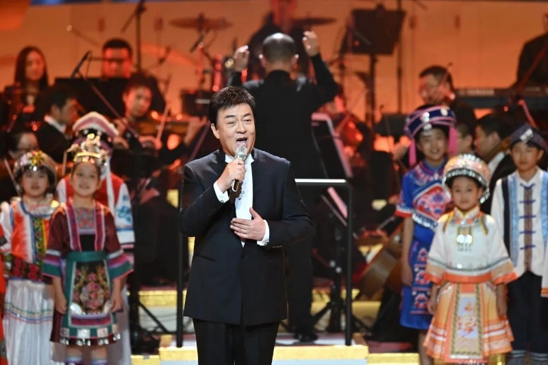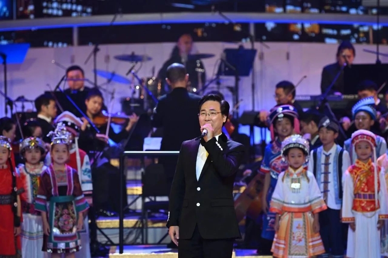 当晚,指挥家肖超执棒成立于1949年的国家级交响乐团——中国电影乐团,并携手廖昌永、吕继宏、王宏伟、吴碧霞、王丽达、王莉、石倚洁、汪正正、谭维维等知名歌唱家和歌手,联袂北京音协合唱团、北京市第171中学金帆合唱团、彩虹乐团,融合表演艺术家徐涛的深情讲述,倾情奉献了一场别开生面的音乐盛宴。