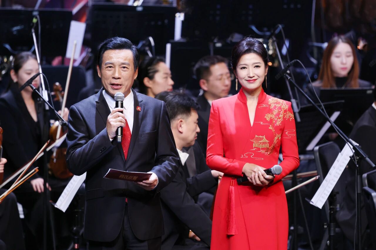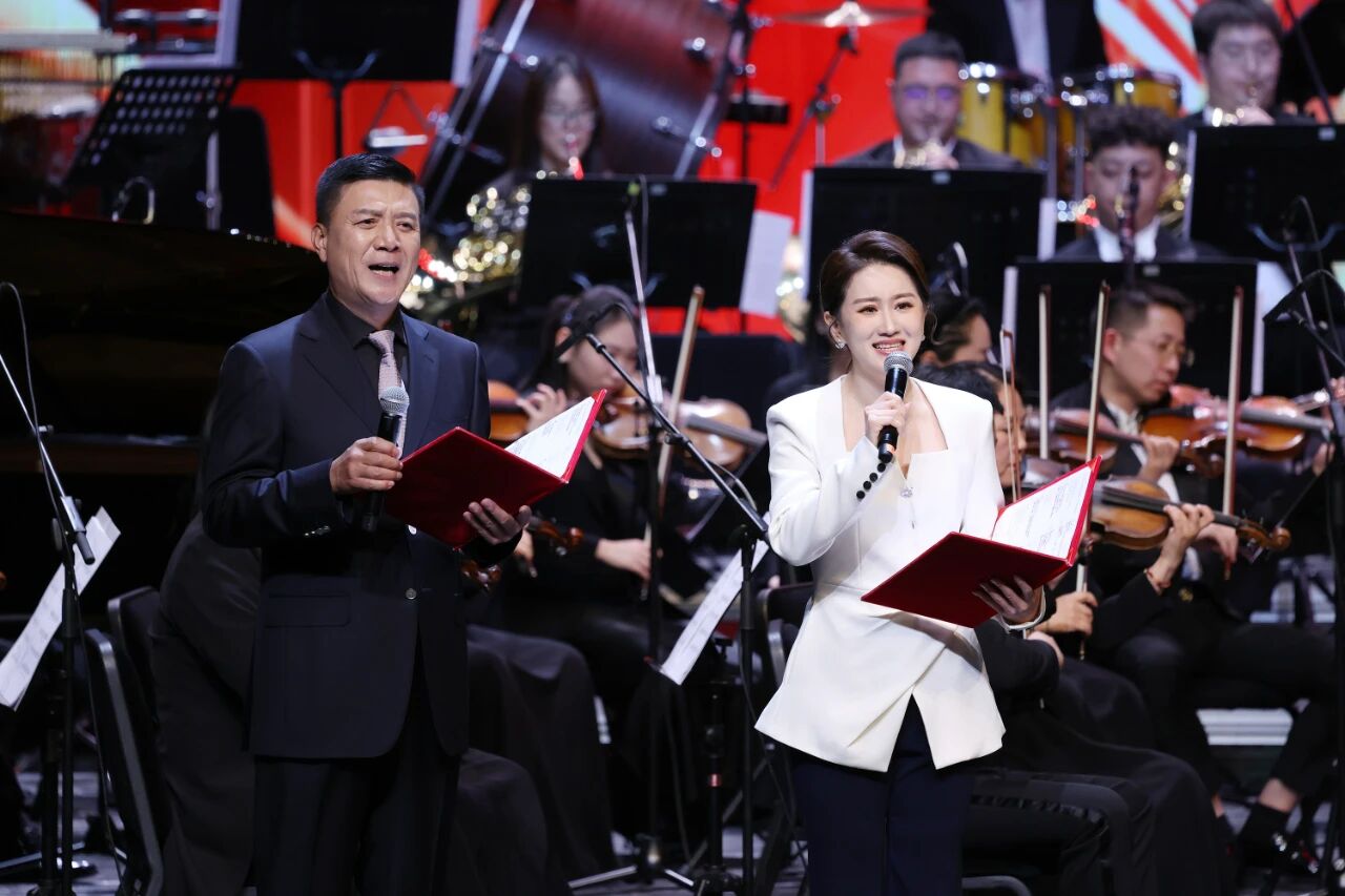 最后,音乐会在庄严宏伟的交响乐《红旗颂》中圆满落幕,优秀电影演员刘之冰和李木子合作的诗朗诵《中国银幕上的红旗故事》,慷慨激昂的诗句与交响乐团大气的演奏相互呼应,将全场气氛推向了高潮。