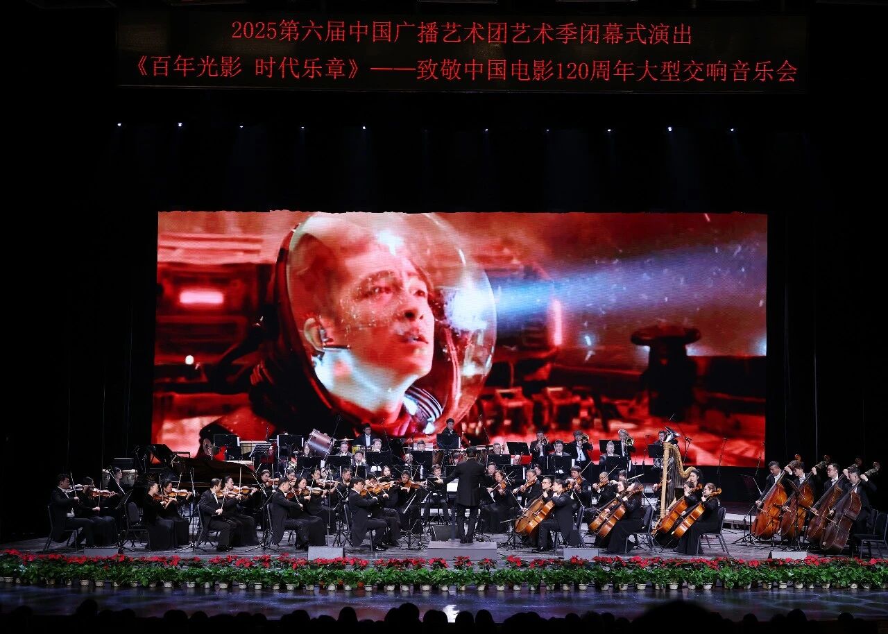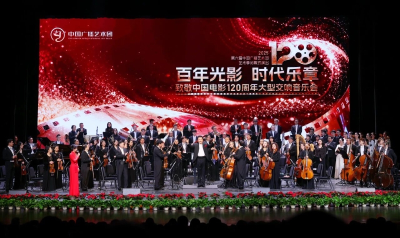 2025年,恰逢中国电影诞生120周年之际,由国家广播电视总局主办,中国广播艺术团精心策划——《百年光影・时代乐章》致敬中国电影120周年大型交响音乐会10月25日在北京保利剧院隆重上演。作为2025第六届中国广播艺术团艺术季的闭幕式演出,本场音乐会以恢弘的交响之音、经典的电影金曲,深情回望了中国电影120年的辉煌历程,为观众带来了一场巡礼光影、震撼心灵的视听盛宴。音乐会分为:序曲、“鎏金时代”、“烽火岁月”、“燃情年代”、“筑梦启航”、尾声六个篇章。
