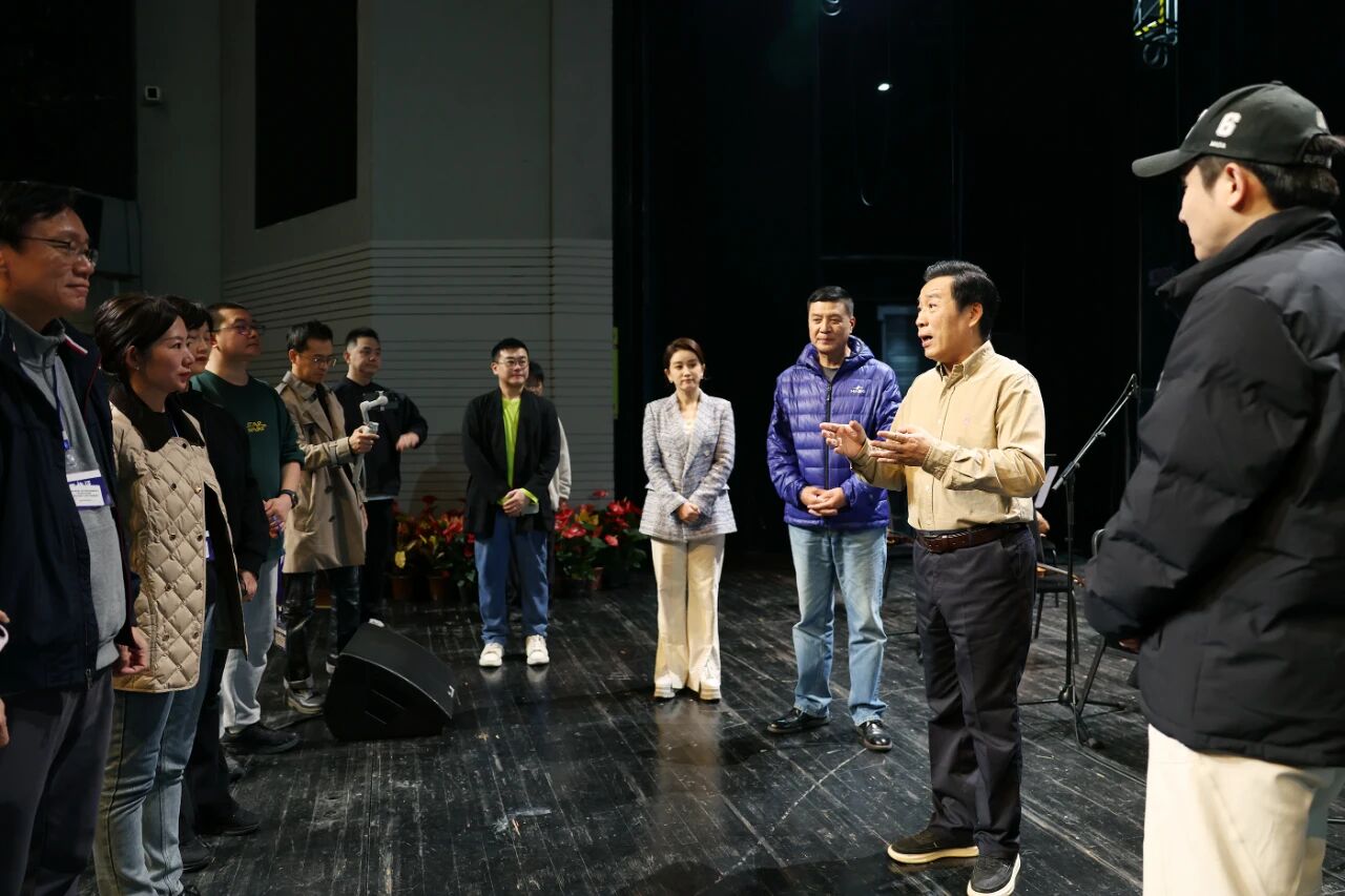 在演出前的排练间隙,中国广播艺术团综艺电声合唱联合党支部、创研制作联合党支部、电影交响乐团党支部还共同组织了一场别开生面的主题党日活动。活动以“艺术传承”为核心,将党性教育与专业实践深度融合。党员同志们与电影导演江平、优秀电影演员刘之冰在排练间隙亲切交流。江平导演结合此次音乐会的曲目设置,生动讲述了多部老电影拍摄与电影音乐录制时与乐团的历史渊源,以及中国广播艺术团众多名家前辈的传承,让在场的党员同志们沉浸式感受老一辈文艺工作者的坚守与初心。