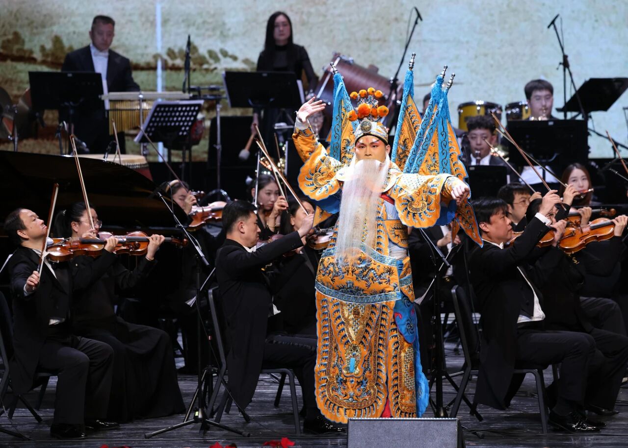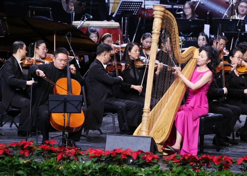 音乐会开篇的序曲《源起·定军山》,以娓娓道来的旋律和精心编排的影像浓缩了中国电影120年走过的光影之路,将观众的思绪带回到中国电影的诞生之日,感受愈久弥香的光影魅力。“鎏金时代”篇章流露出脉脉温情,《春天里》《天涯歌女》《四季歌》《渔光曲》等经典歌曲轮番唱响,青年歌唱家伊扬、刘洺君,大提琴演奏家王崇武、竖琴演奏家李莉、京剧演员余书剑联袂合作,用深情的演唱、精湛的演奏、传神的表演,带领观众回溯了中国电影早期的璀璨时光,在旋律中感受中国电影百年历程走过的繁华与沧桑。