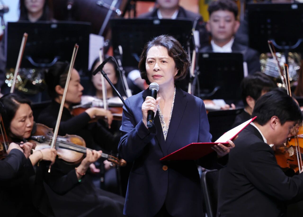 “烽火岁月”篇章充满了激情与力量,《红色娘子军》的序曲和《快乐的女战士》,以激昂的交响乐展现了革命年代的热血与豪情;电影表演艺术家宋晓英将自己年轻时主演的《刑场上的婚礼》中《就义誓言》的经典片段情景再现,与江平导演合作,与交响乐演奏完美融合,重现了革命者生命最后时刻的震撼誓言。