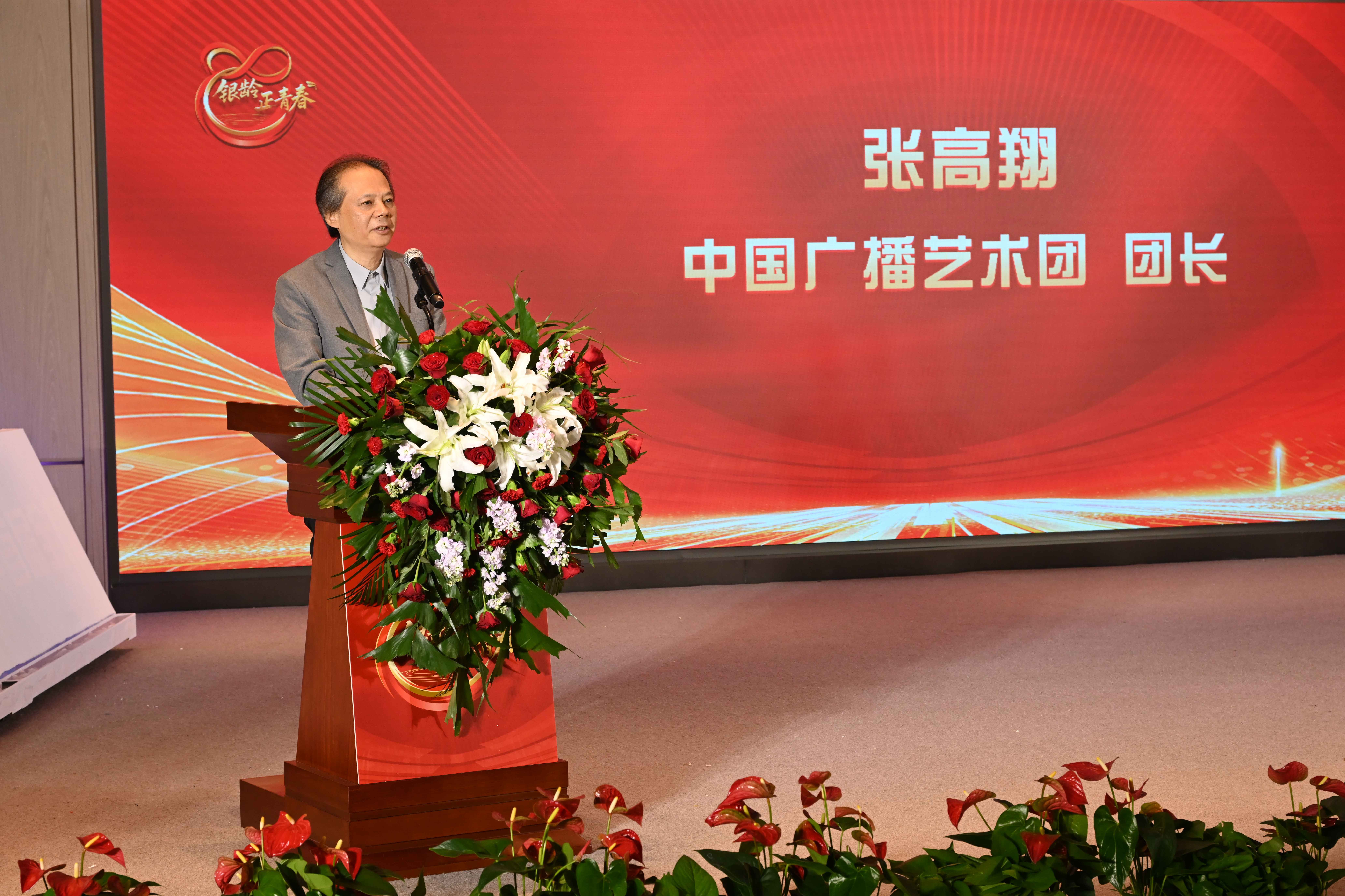 中国广播艺术团团长张高翔发表致辞。《银龄正青春——2026年首届全国中老年人才艺大会》坚持“以人民为中心”,大力弘扬孝亲敬老传统美德。大会通过线上线下全方位的互动模式,为广大中老年人搭建一个具有广泛影响力的才艺展示舞台,打造一场覆盖全国、辐射多平台的中老年艺术盛会。