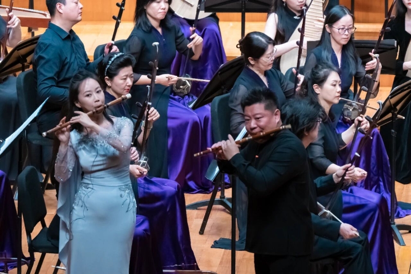 著名胡琴演奏家姜克美执板胡奏响《花梆子》,板胡的高亢明亮,搭配乐队的热烈烘托,像极了七夕夜人间的欢闹——街头的花灯、恋人的笑语,都被揉进了跳跃的音符里,满是烟火气的浪漫。《龙跃东方》的排鼓铿锵有力,通通鼓沉稳厚重,马林巴灵动清脆,在民族管弦乐的交响中,似银河奔涌,如巨龙腾飞。用心聆听丝竹之跃动,民族管弦乐成为跨越国界的桥梁与情感纽带,让中国特有的浪漫与中华优秀传统文化融于一体,感动岁月、直抵人心。