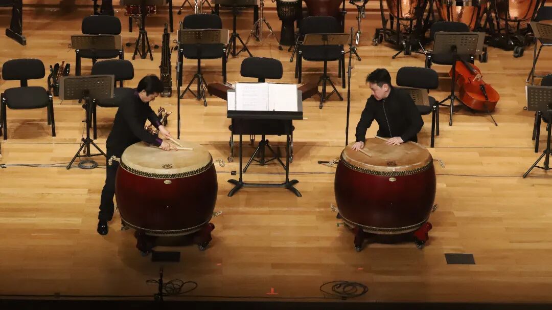 吴晓光与董淼《牛斗虎》鼓乐的演绎,将演奏技巧与形体表演完美融合,让整个音乐厅仿佛置身于一场激烈的牛虎争斗现场。