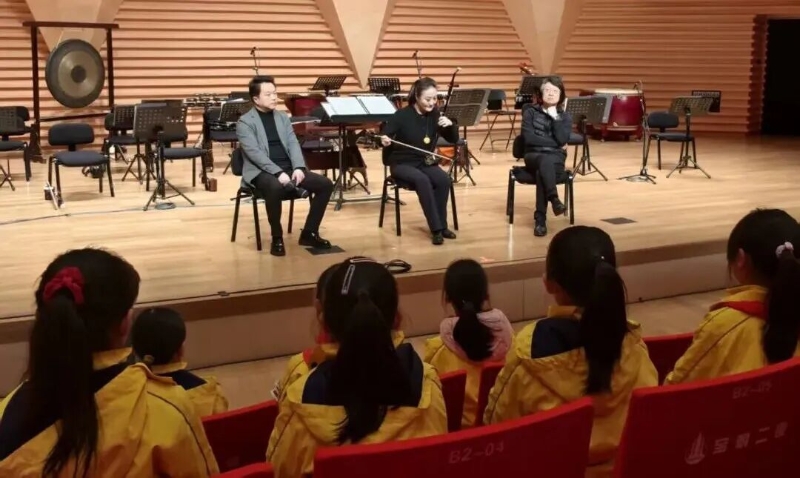 在随后的互动环节中,学生们踊跃提问,三位老师耐心解答,课堂气氛热烈而真诚。这场大师公开课不仅为当地小学生提供了一次极为宝贵的,近距离接触国家级艺术家的机会,也在孩子们心中播下了认识民族音乐、热爱民族文化的种子,为国乐的传承与普及注入了鲜活的力量。