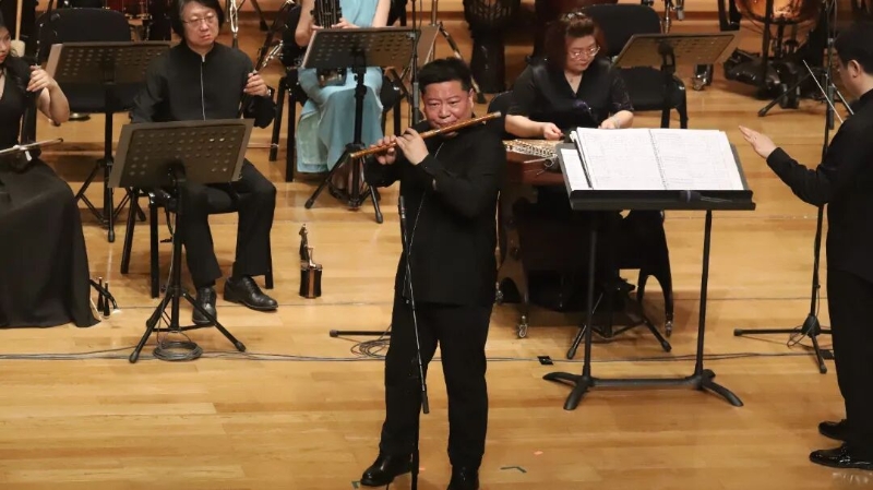 侯长青的笛声如同草原上的清风,将《牧民新歌》的旋律飞扬掠过辽阔的土地,笛声与乐队配合如行云流水,仿佛让人置身于广袤的草原,感受到那份洒脱与悠然。