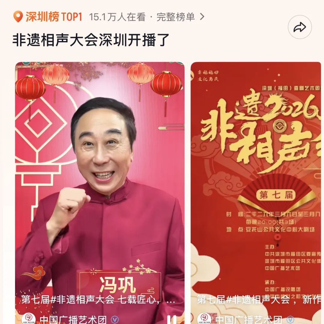 相声是时代的“鲜”丨从全员新作到榜一热度,第七届非遗相声大会在深圳“鲜”活启幕