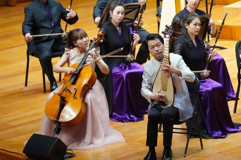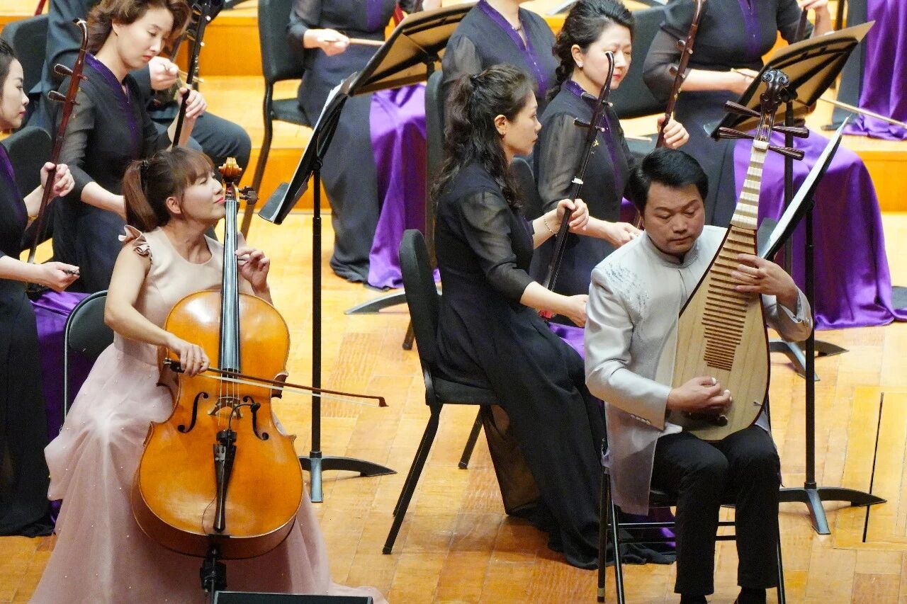 琵琶、大提琴与乐队《彝族舞曲》,作品融合了民族传统与西方创作手法,以抒情的旋律勾勒出彝族夜色的静谧,又以灵动的节奏展现出青年男女欢舞的热烈,传统韵味与时尚感完美交融,让经典作品焕发出全新的艺术生命力。